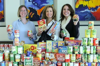 Feeding America runs food banks all across the United States. In addition to our substantial national donation to the organization (which paid for about 800,000 meals, approximately one million pounds of food), many of our offices around the United States held their own canned food drives to benefit local food banks. Here is a picture from the holiday party we held in our Raleigh, NC headquarters, showing the food we collected the first year.